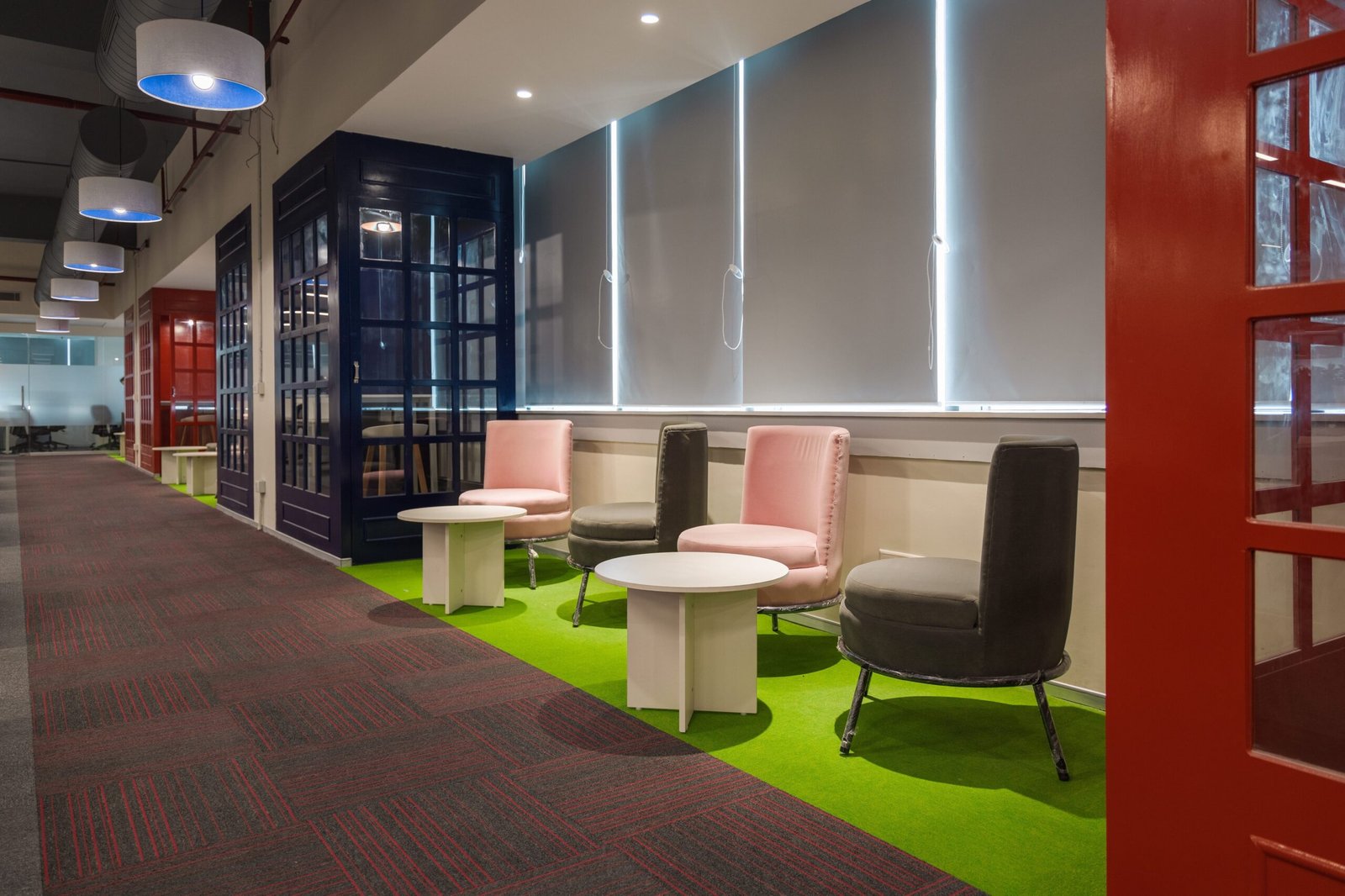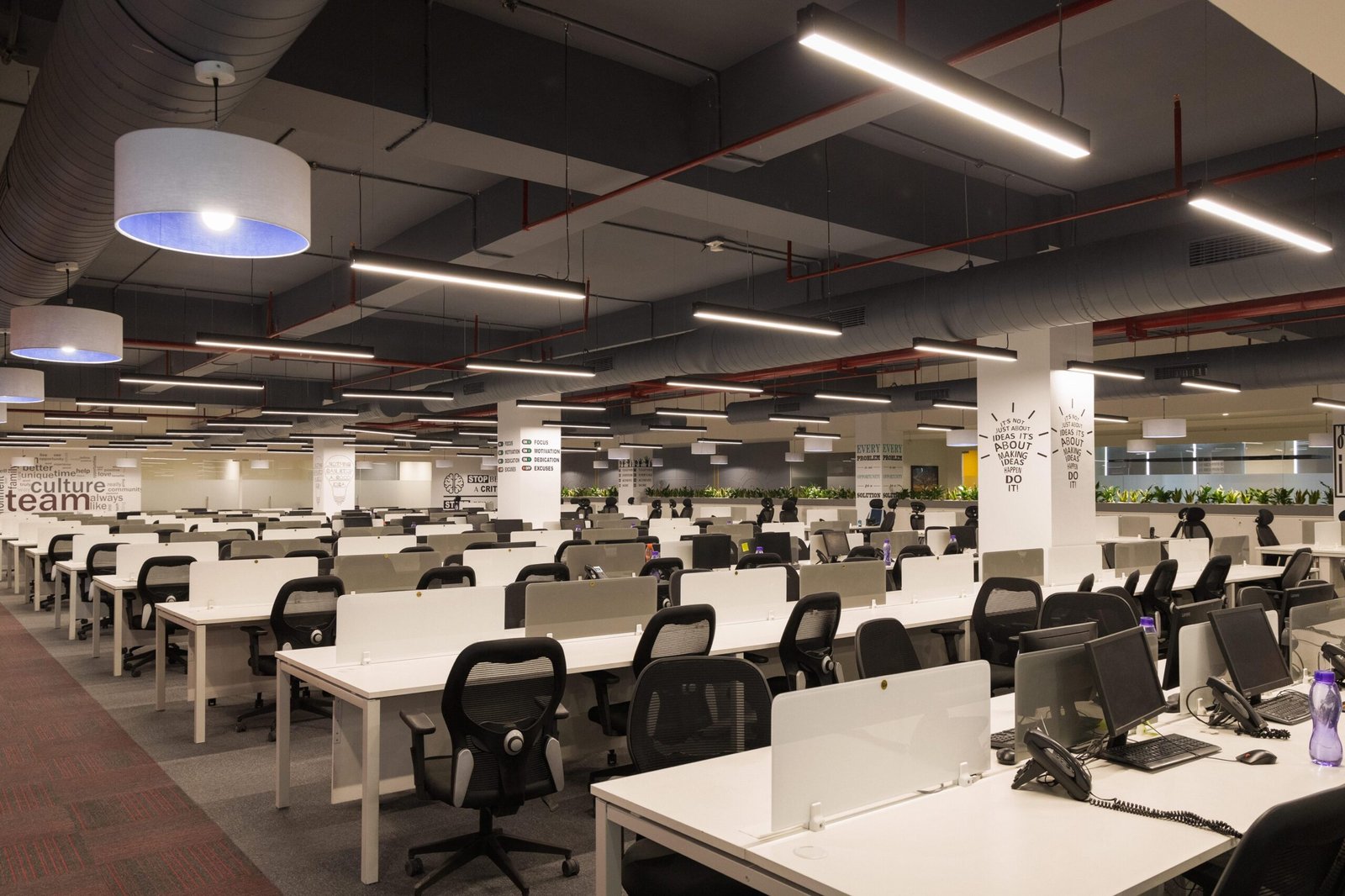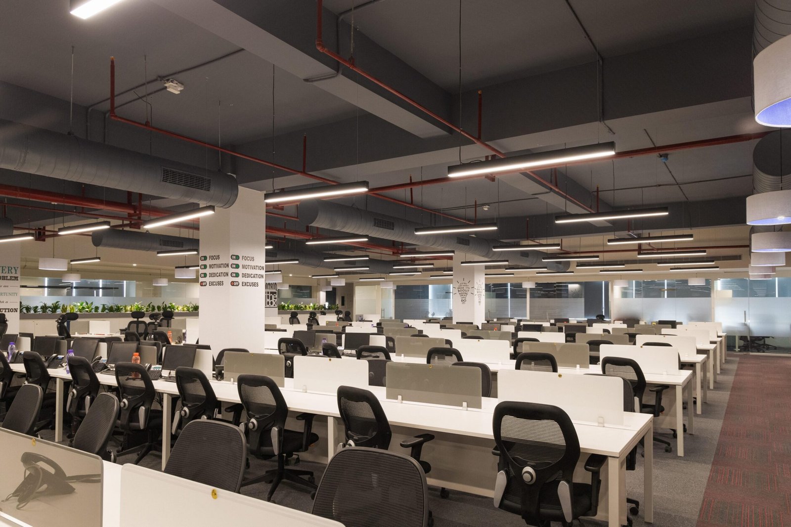 Challenge and Solution - Many aspects are considered in office furniture design, such as colours, floor plans, lighting layouts and modern technology integrations. For this project, achieving the employees' comfort and reinstating a sense of hierarchy were important. We chose a stylish and functional appeal for the modular furniture. The floor area modular workstations were selected for standard assembly to ensure a fast turnaround time. Colour of wood and bold upholstery as reserved for the cabin and conference area furniture. These two furniture design stances, combined with purpose-designed lights, offered the right balance of colours to inspire people and their work positively.