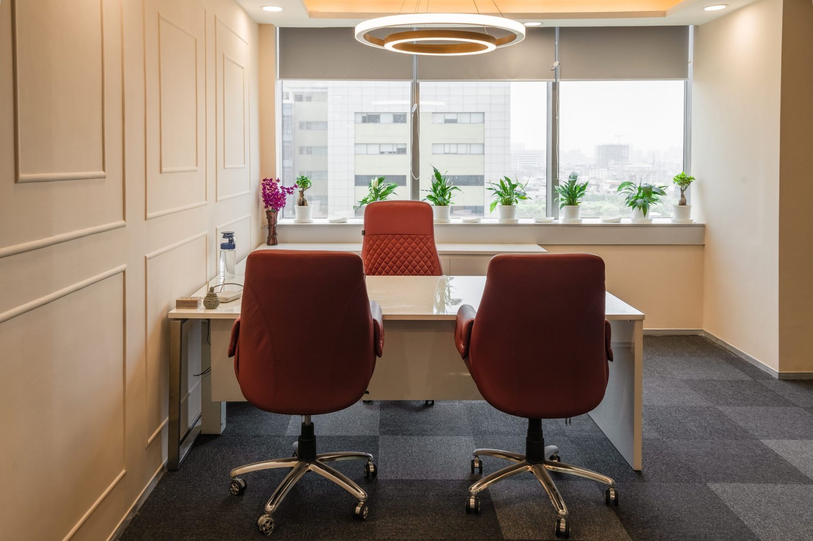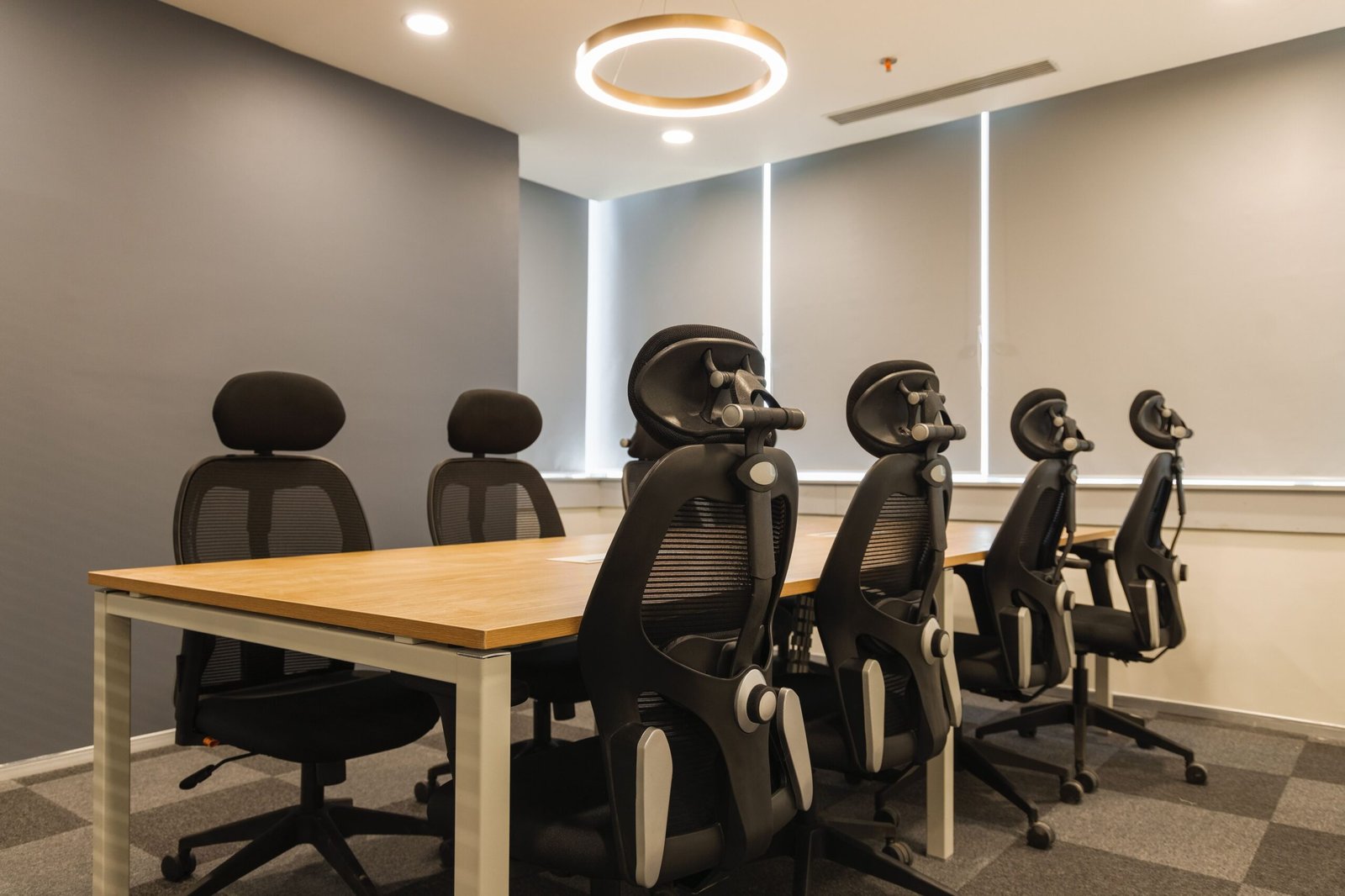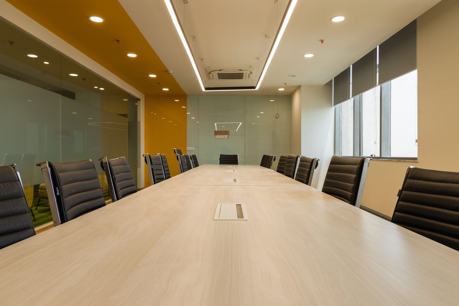 Rectangular tables are more commonly used in boardroom meetings as they establish a head of the table and indicate order and hierarchy. The person heading the discussion takes the central seat.